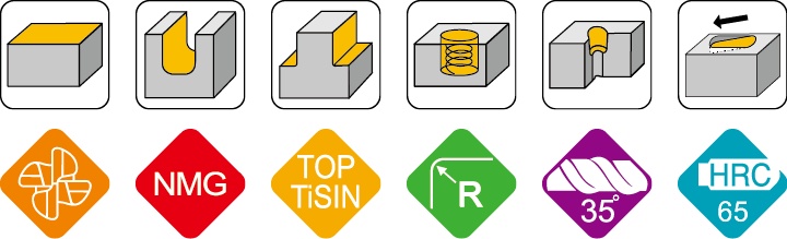 应用材质:十字钢, 合金钢, 调质钢(≦63°HRC), 铸铁。