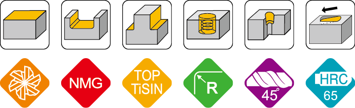 - 应用材质:十字钢, 合金钢, 调质钢(≦63°HRC), 铸铁。