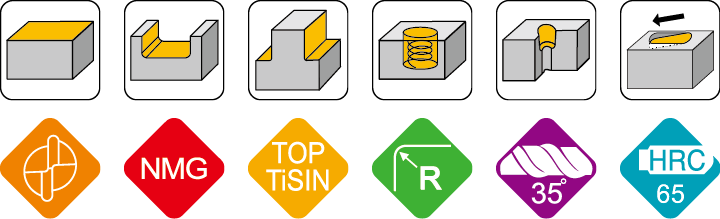 - 应用材质:十字钢, 合金钢, 调质钢(≦63°HRC), 铸铁。